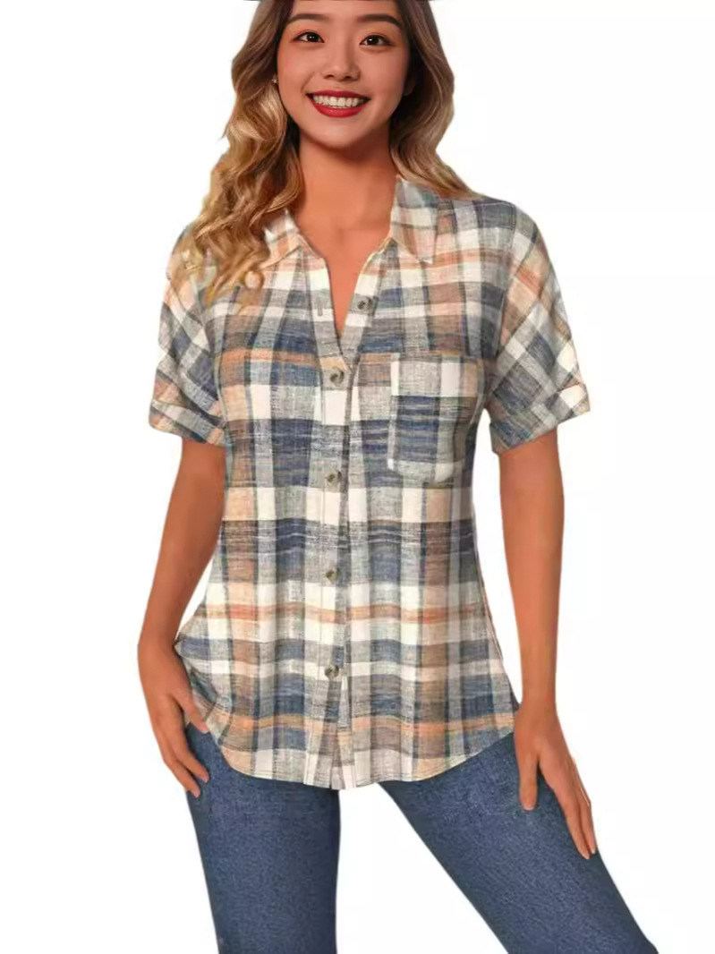 Women's Spring And Summer Women's Clothing Long-sleeved Plaid Shirt